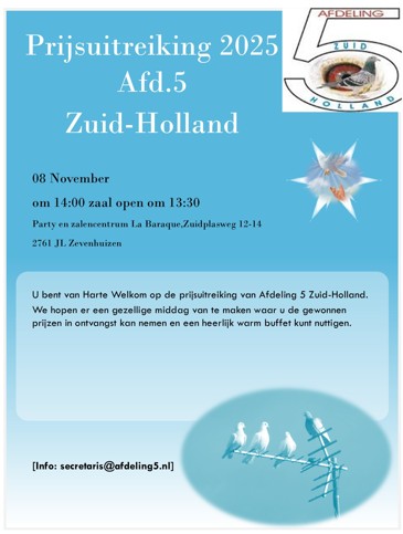 Houd U wel rekening met het minimum aantal duiven van 100 en minimum aantal deelnemers van 5. Bij minder dan 5 deelnemers kan er niet in eigen club ingekorfd worden, korf dan in bij een andere vereniging. Er moet dan ook in die club worden afgeslagen. Insturen D- en W-bestanden moeten ook vanuit die club gebeuren!